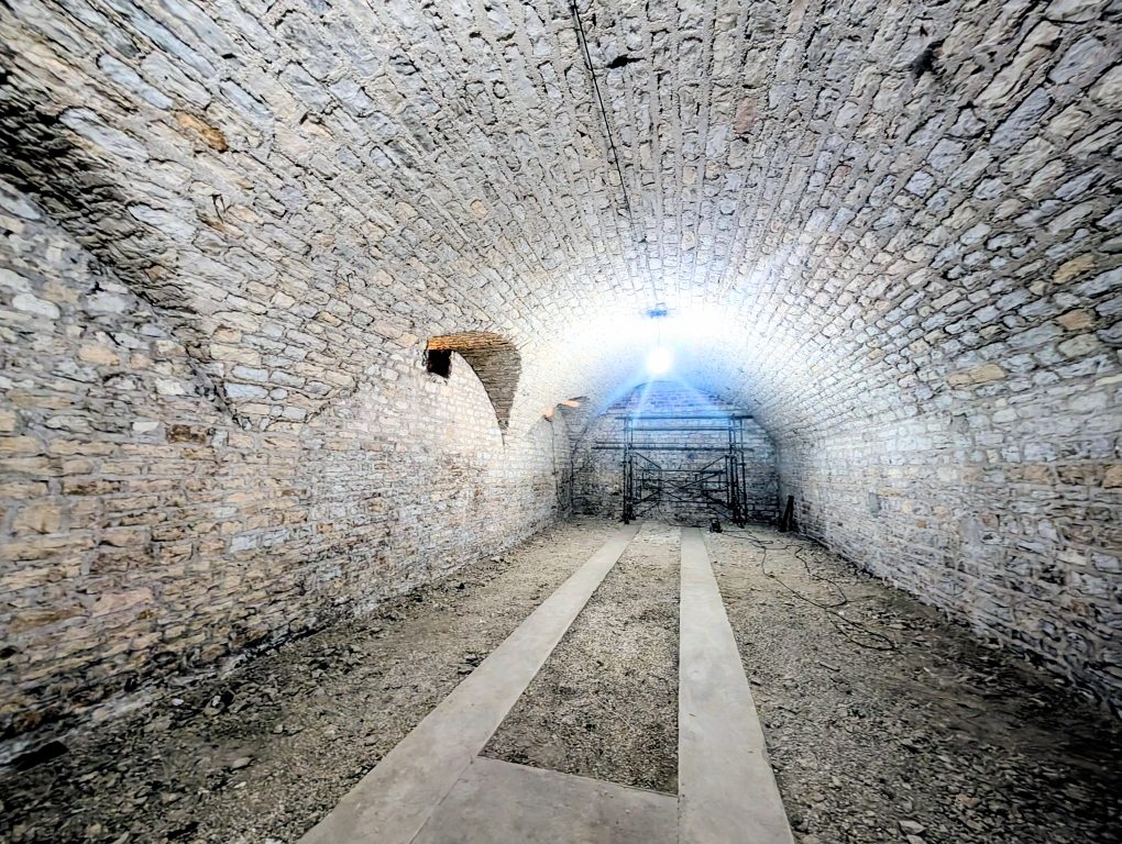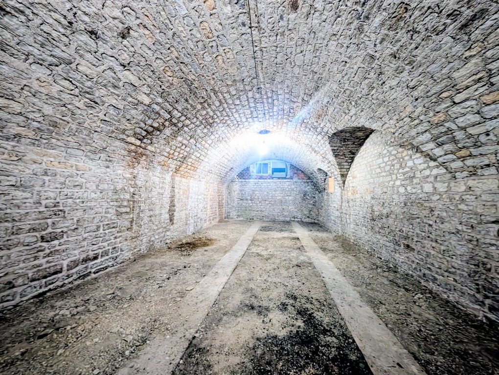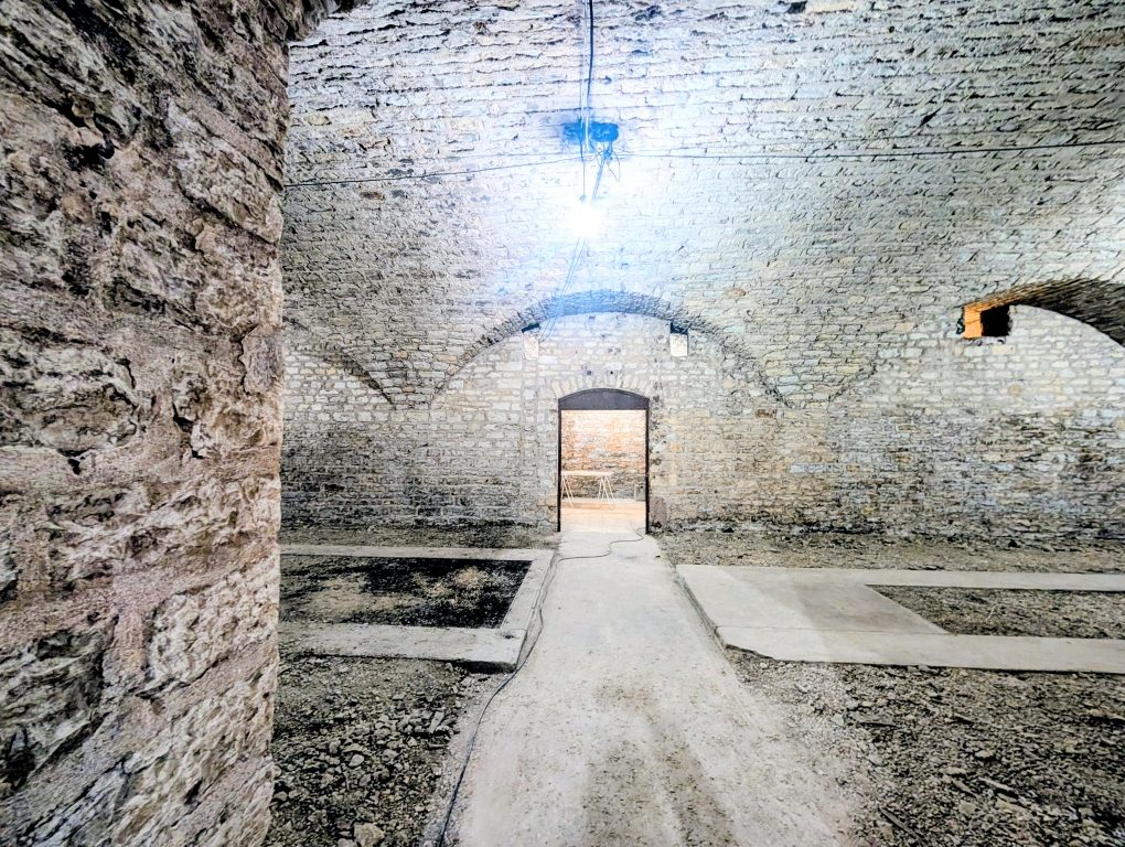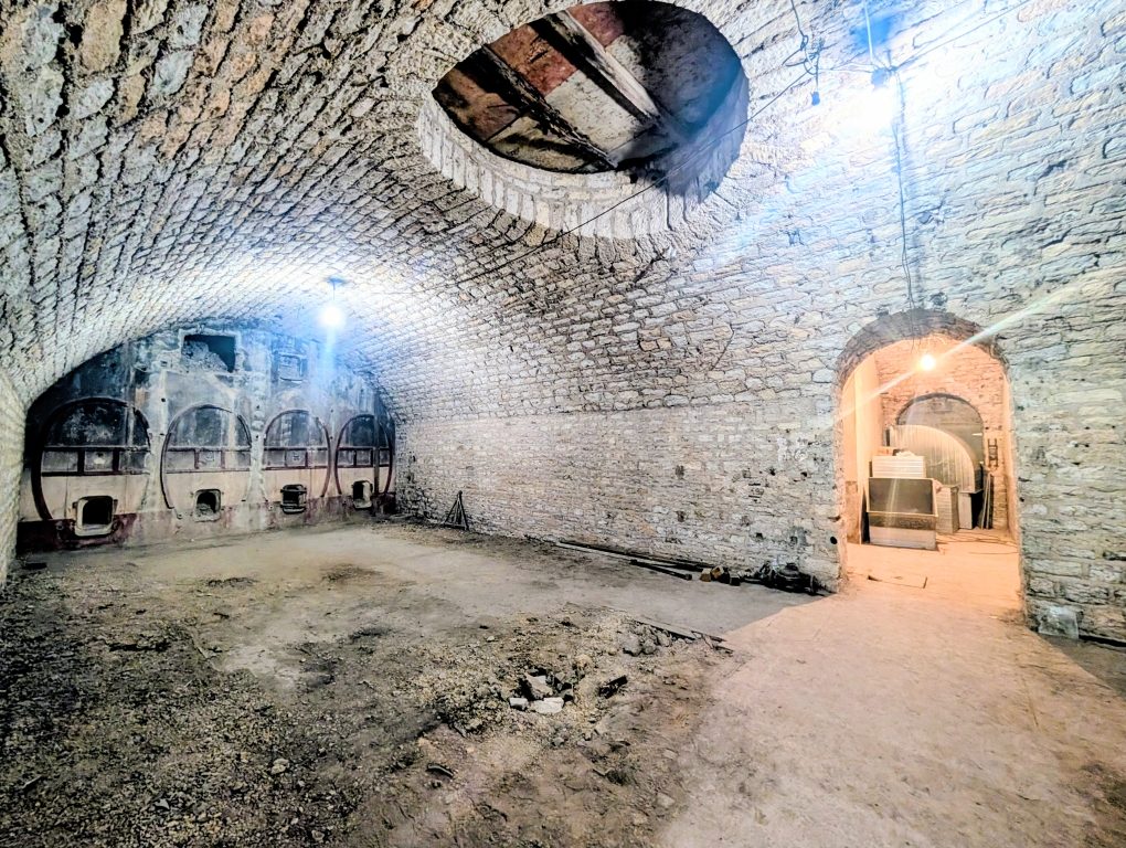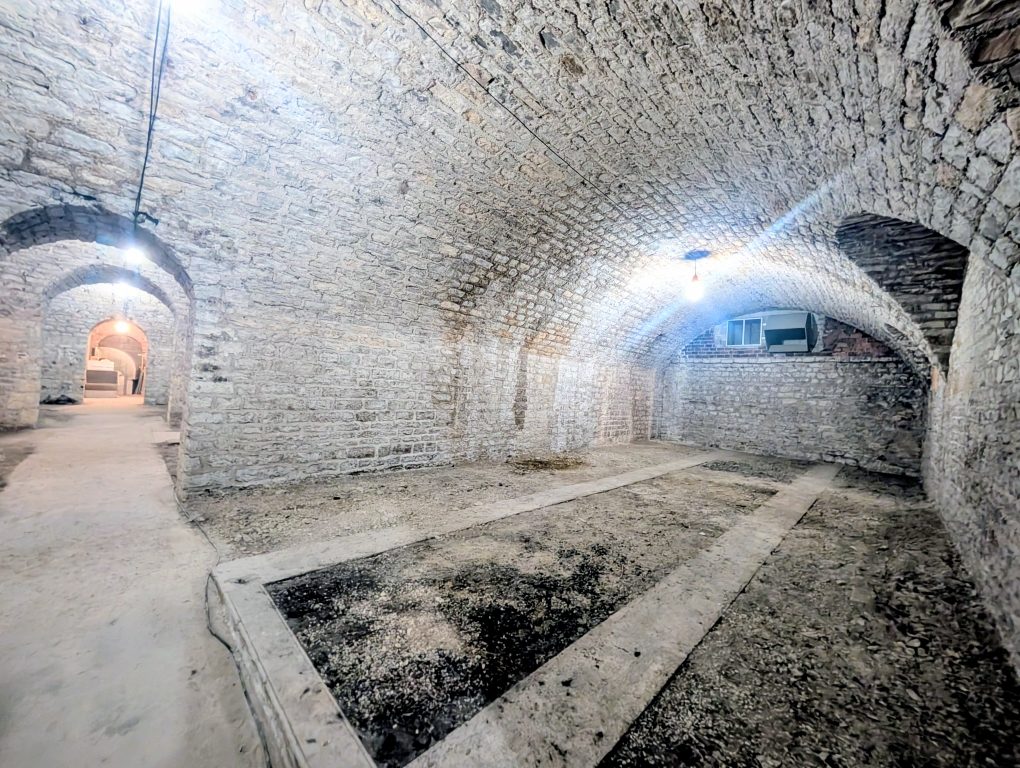 Ce caveau historique construit en pierre de taille, joints taillés, offre une surface exceptionnelle de 800 m² répartie sur de majestueuses voûtes.
