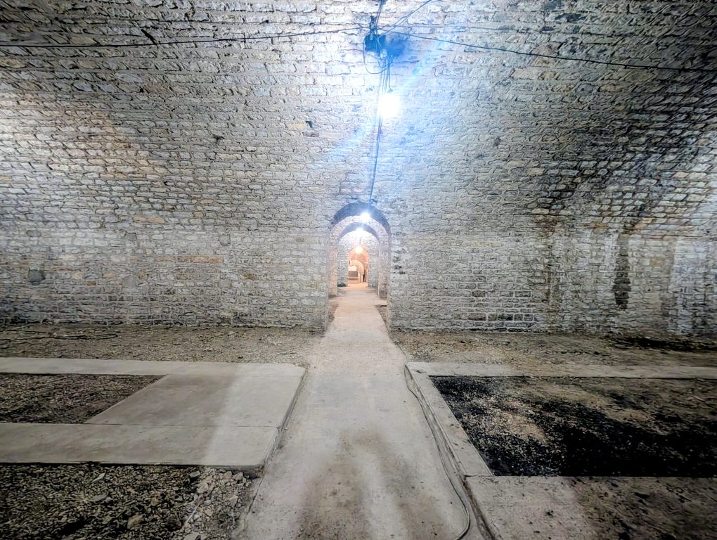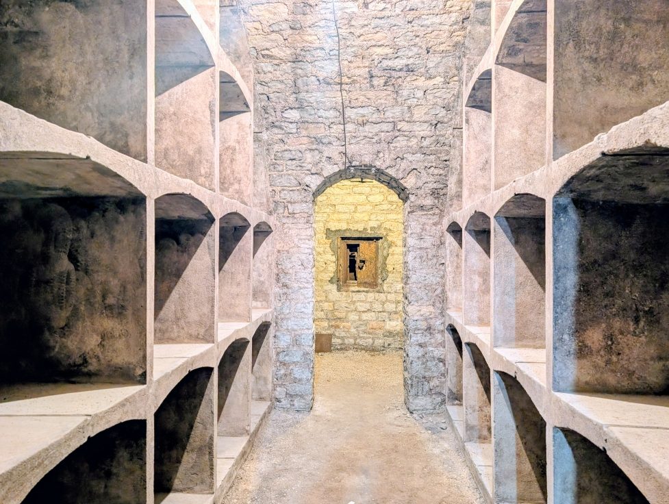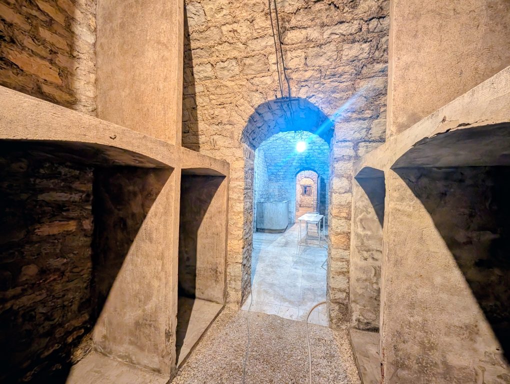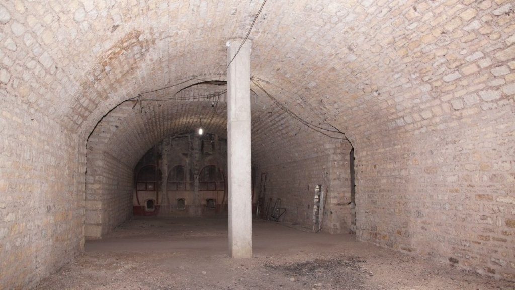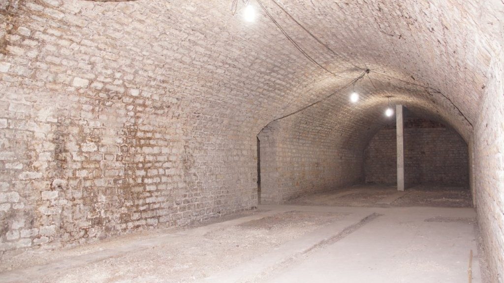 Ce caveau historique construit en pierre de taille, joints taillés, offre une surface exceptionnelle de 800 m² répartie sur de majestueuses voûtes.