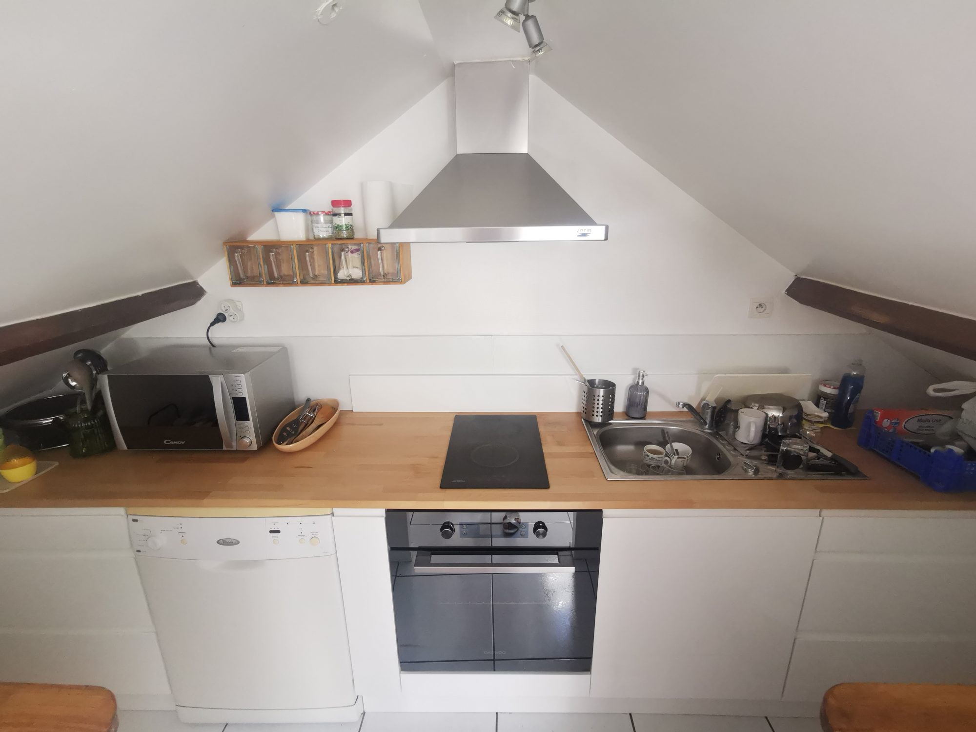 Appartement de type 2 mansardé , surface habitable de 15,55 et 49,30 au sol .