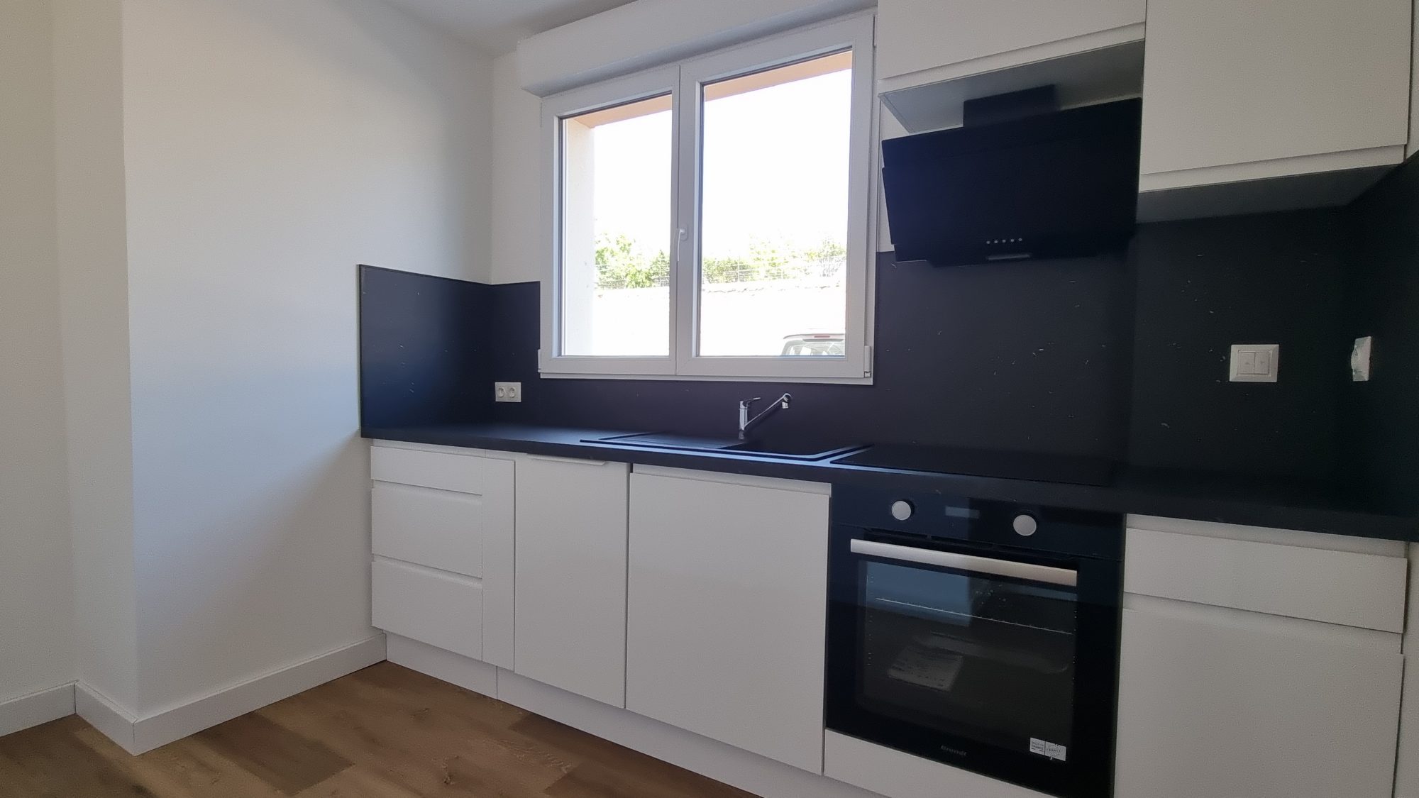 L'entrée dessert à droite un salon et une chambre, à gauche, une cuisine indépendante intégralement équipée et aménagée ainsi qu'une salle de bains et des WC.