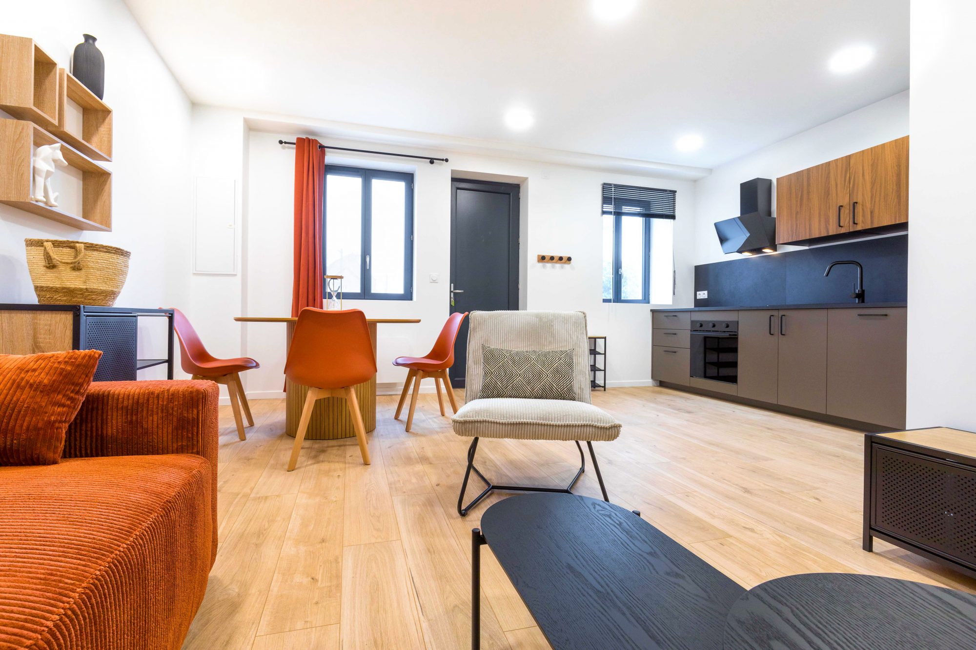 Il comprend une entrée sur une lumineuse pièce de vie de 25 m², une cuisine aménagée et équipée (meubles hauts et bas, plaque induction, frigo, four, hotte), une chambre avec placards / dressing, une salle d'eau, WC et buanderie.