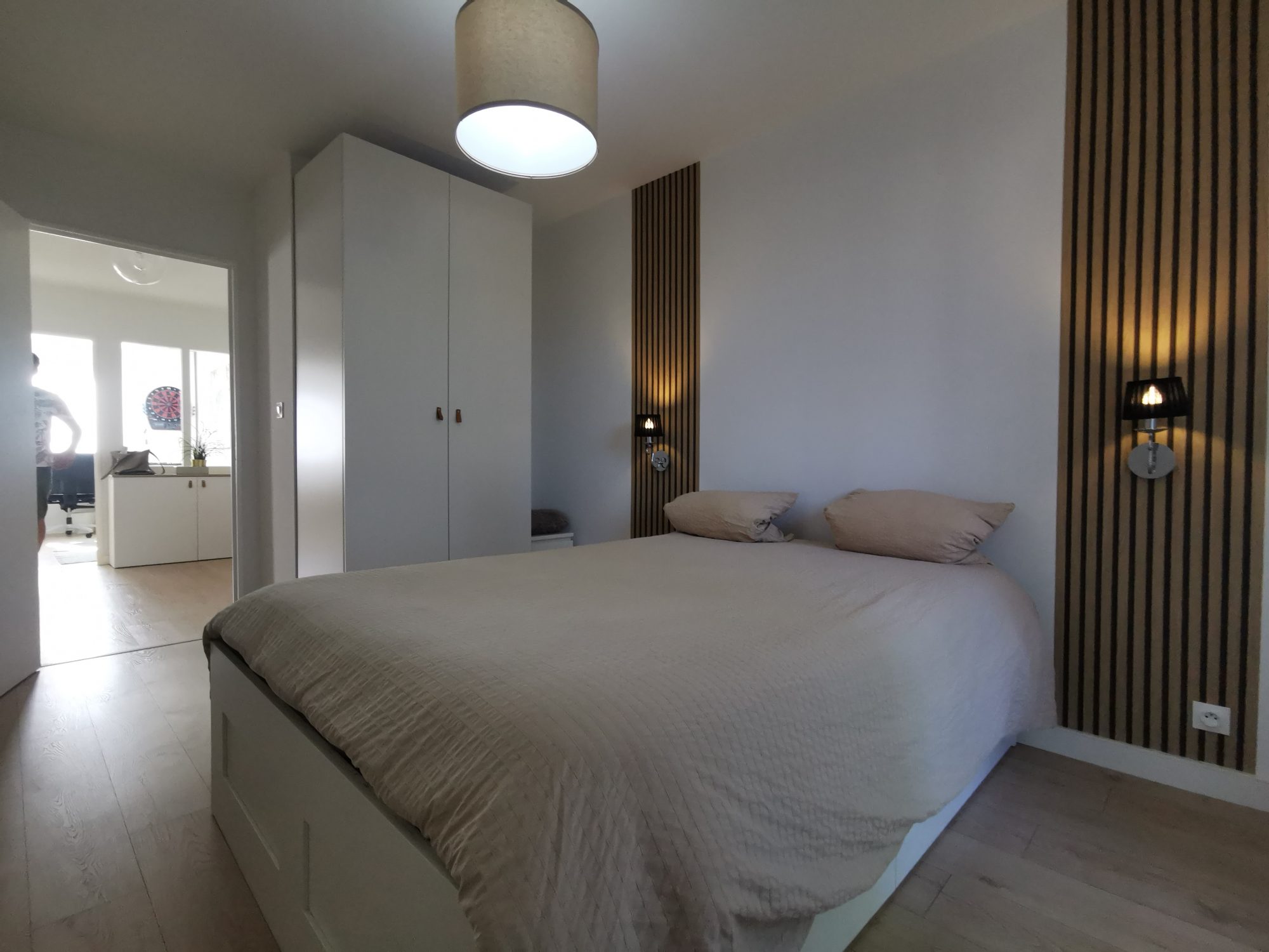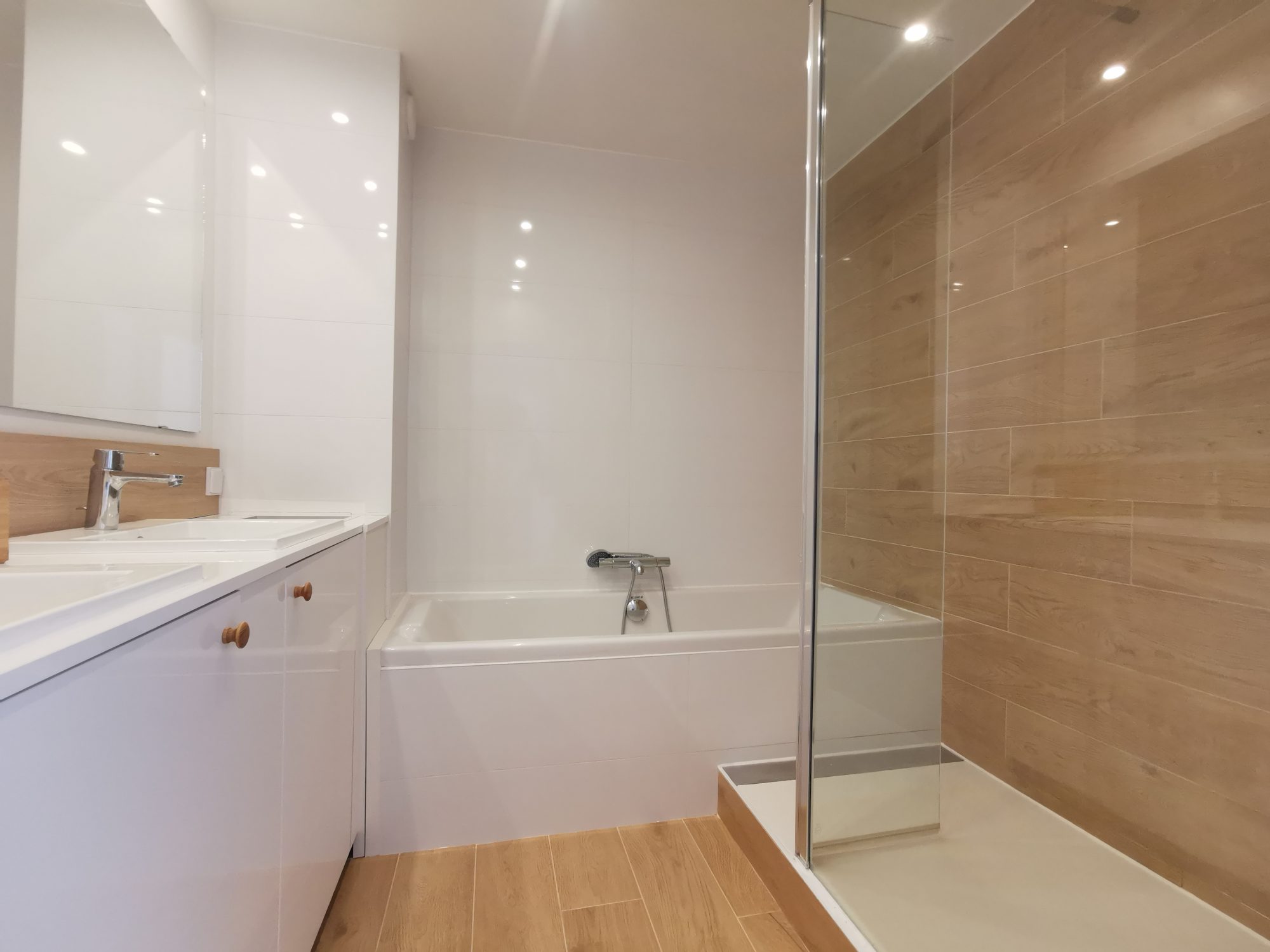 Un bureau très lumineux, deux chambres avec dressing ,une salle de bains et douche , un WC indépendant .