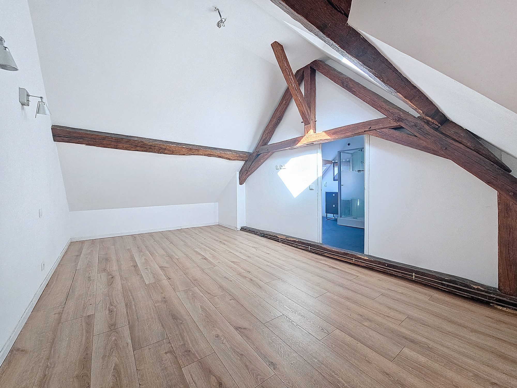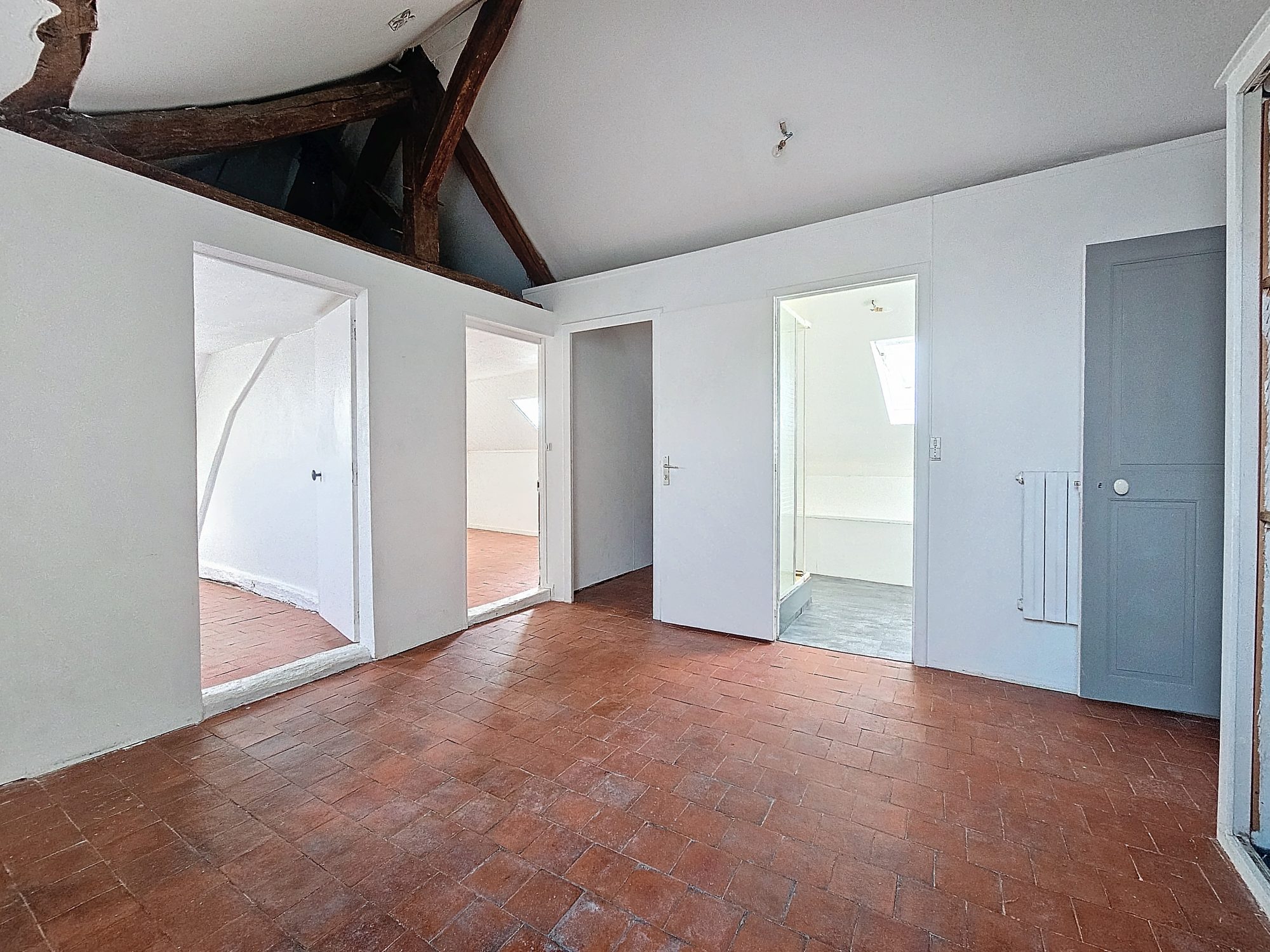 Tous ces volumes sont mis en valeurs par une belle poutraison , des sols en véritable tomette et la distribution des pièces étonnante crée cette ambiance cosy.