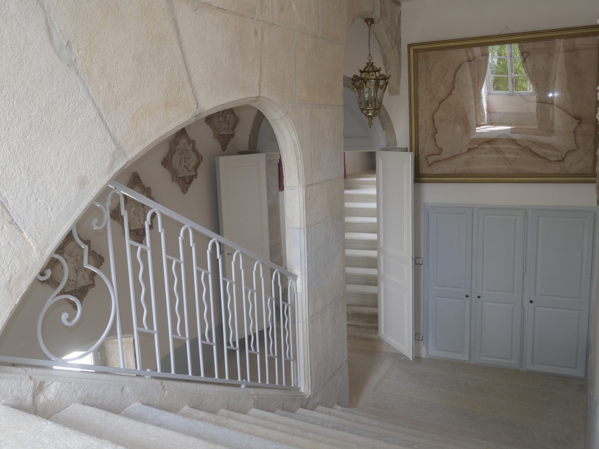 L'entrée se fait par un escalier à double révolution et vous découvrirez:
