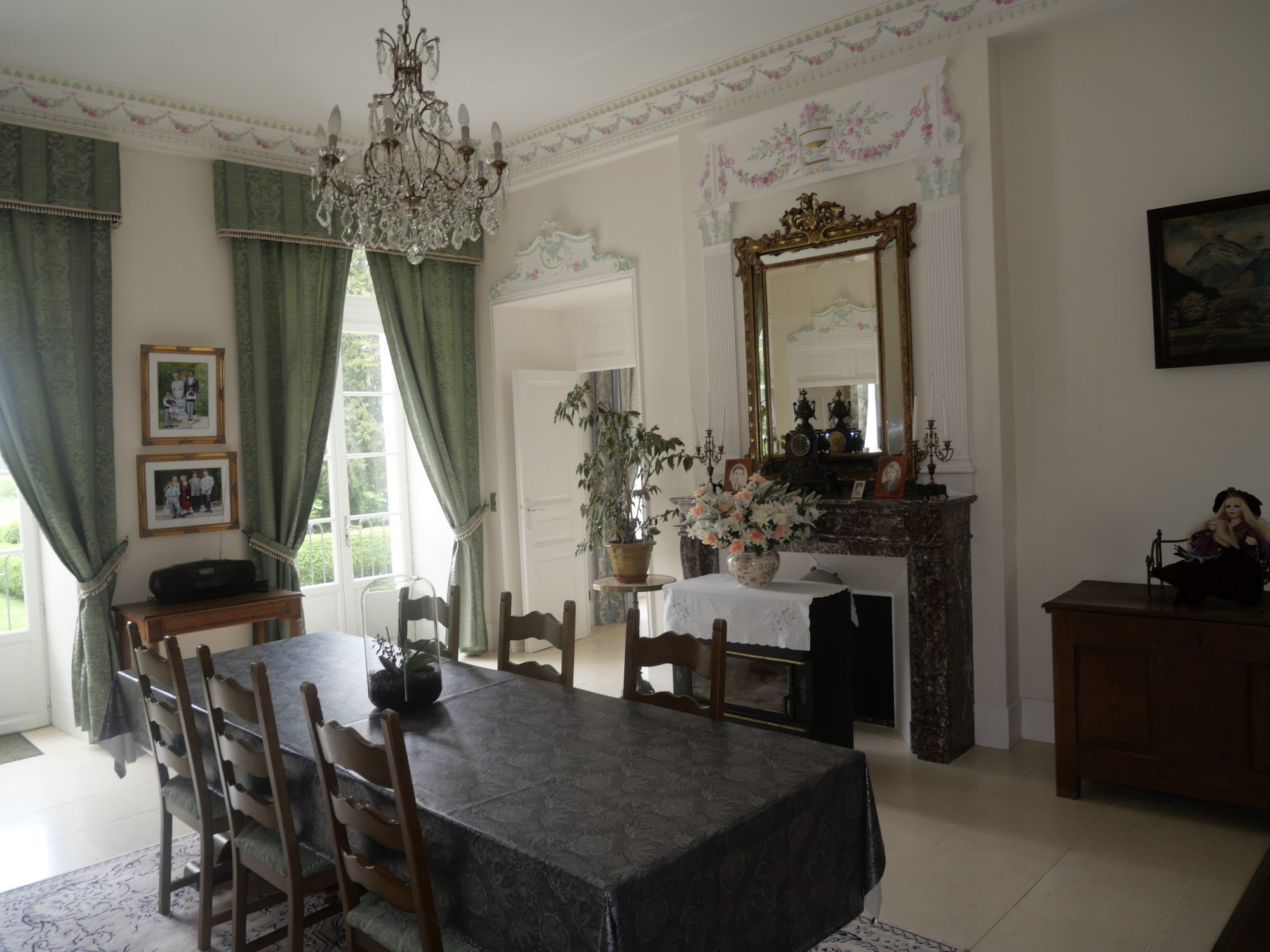 Elevé sur les anciennes cuisines et 3 niveaux, ce château imposant de 685 m² environ est parfaitement symétrique et comprend un corps principal et 4 ailes. Il se dresse fièrement sur un domaine de 7200 m² offrant ainsi un cadre verdoyant et luxuriant. Ce parc arboré d'arbres fruitiers et de tilleuls, dont un planté à la Révolution, invite à la flânerie et à la détente.