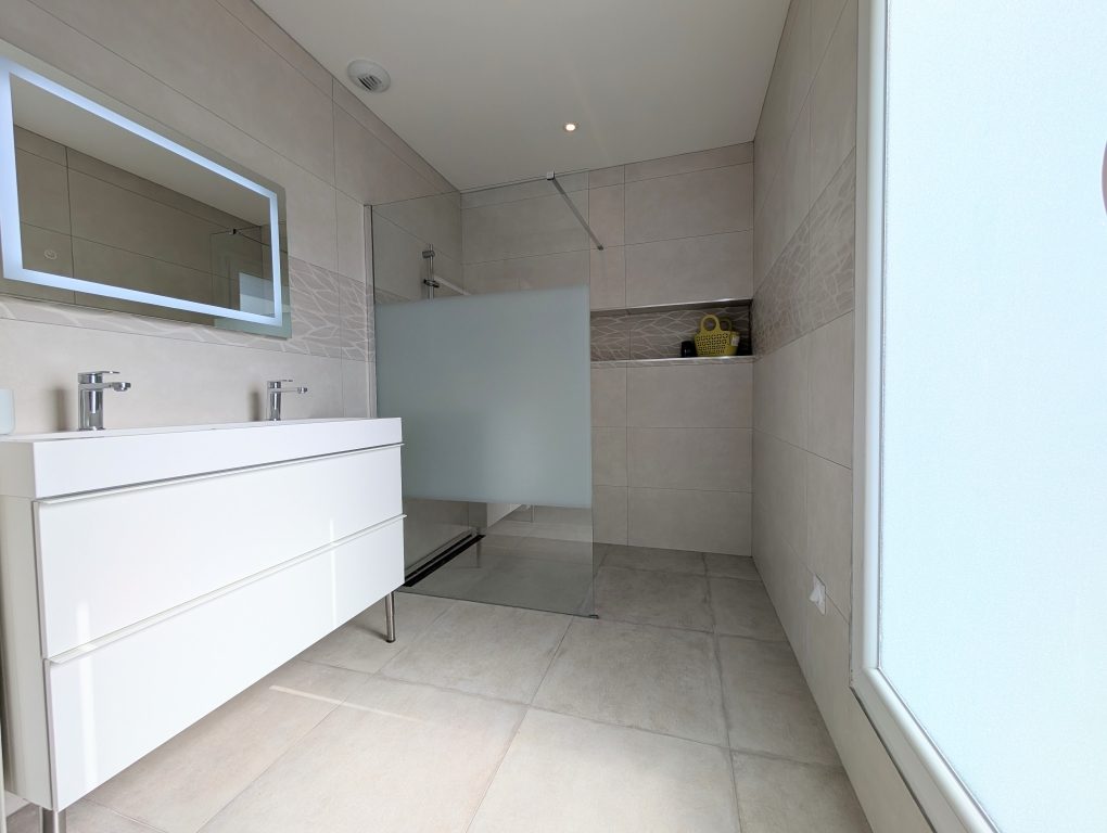 A l'étage, une mezzanine desservant deux grandes chambres avec terrasse de plus de 40 m² et une suite parentale avec salle d'eau et terrasse privative, une salle d'eau et WC.