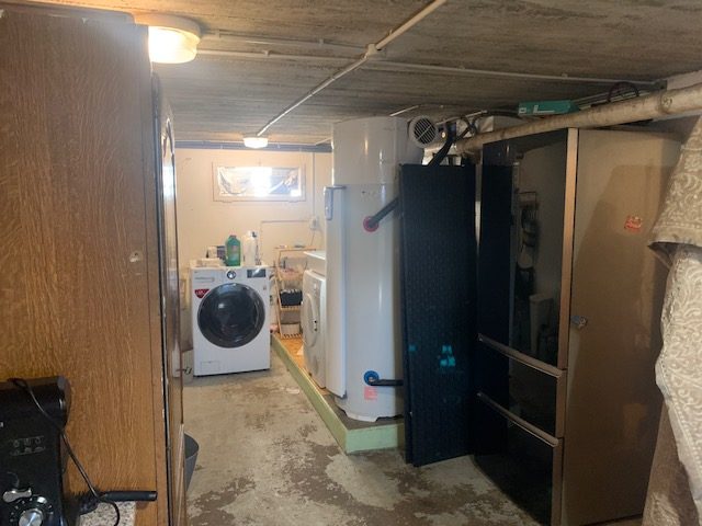 Sous-sol semi-enterré de 90m2 avec garage, une chambre, une pièce détente, bureau, une grande buanderie / chaufferie et une cave.