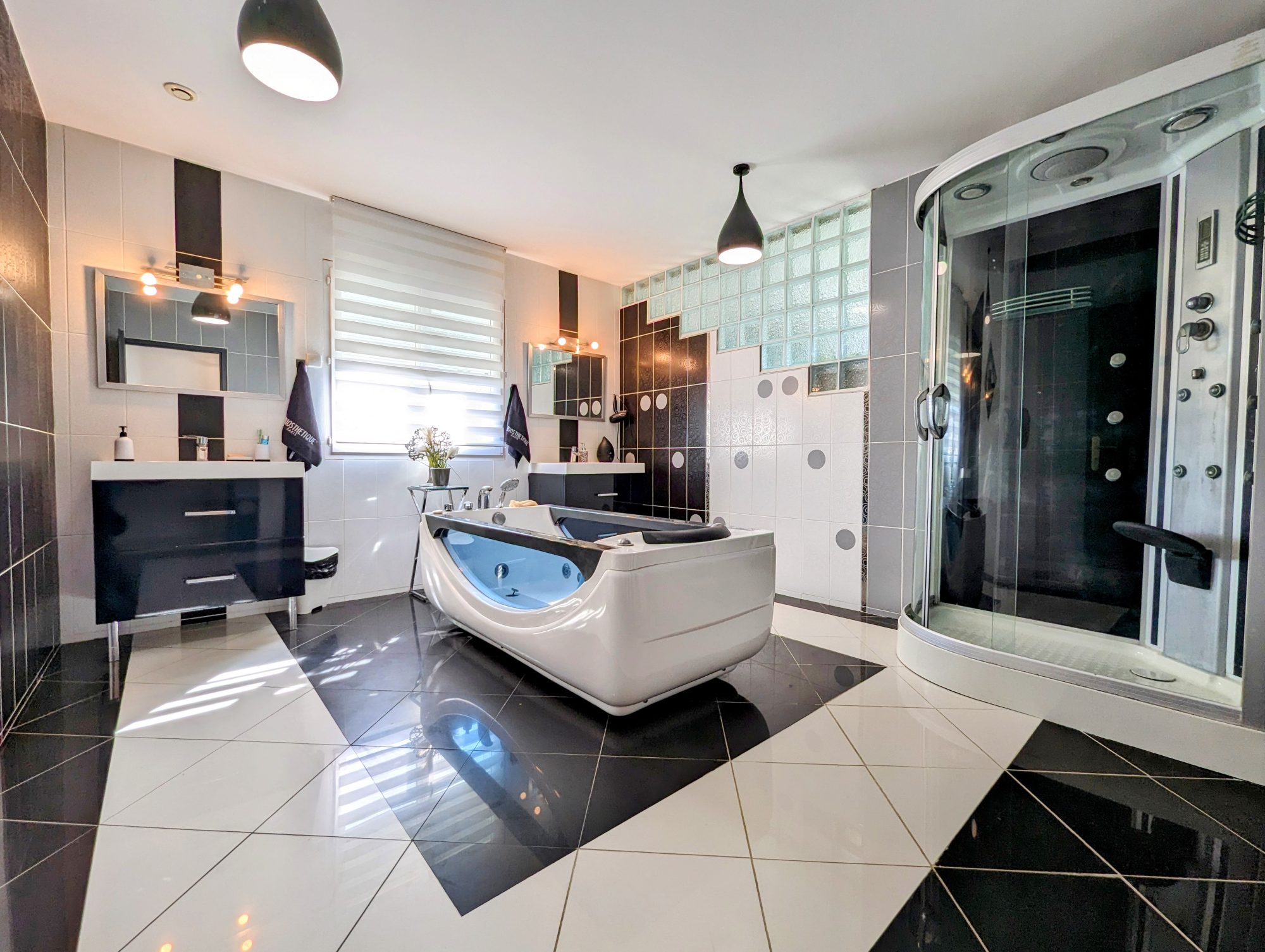 Huisseries PVC double vitrage, volets motorisés en alu, aspiration centralisée, visiophone...