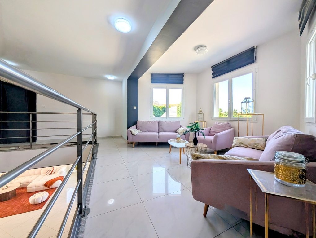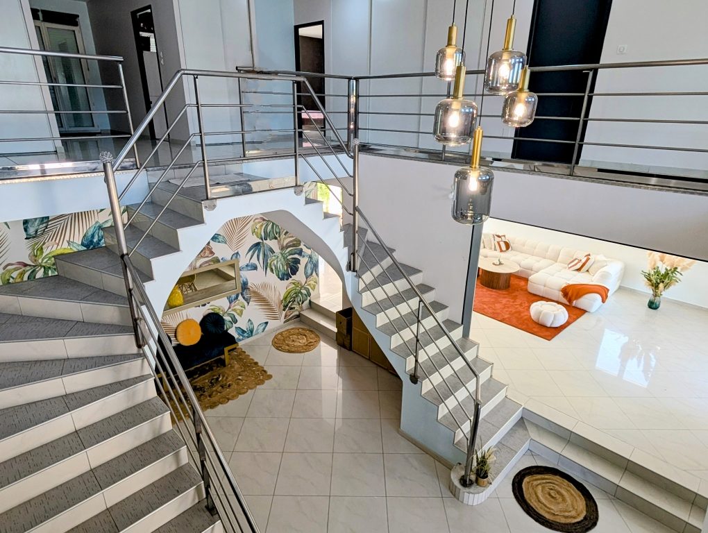 A l'étage, une vaste mezzanine avec espace détente, 4 chambres toutes avec salle d'eau privative, dressing et deux avec terrasse, WC indépendant et buanderie.
